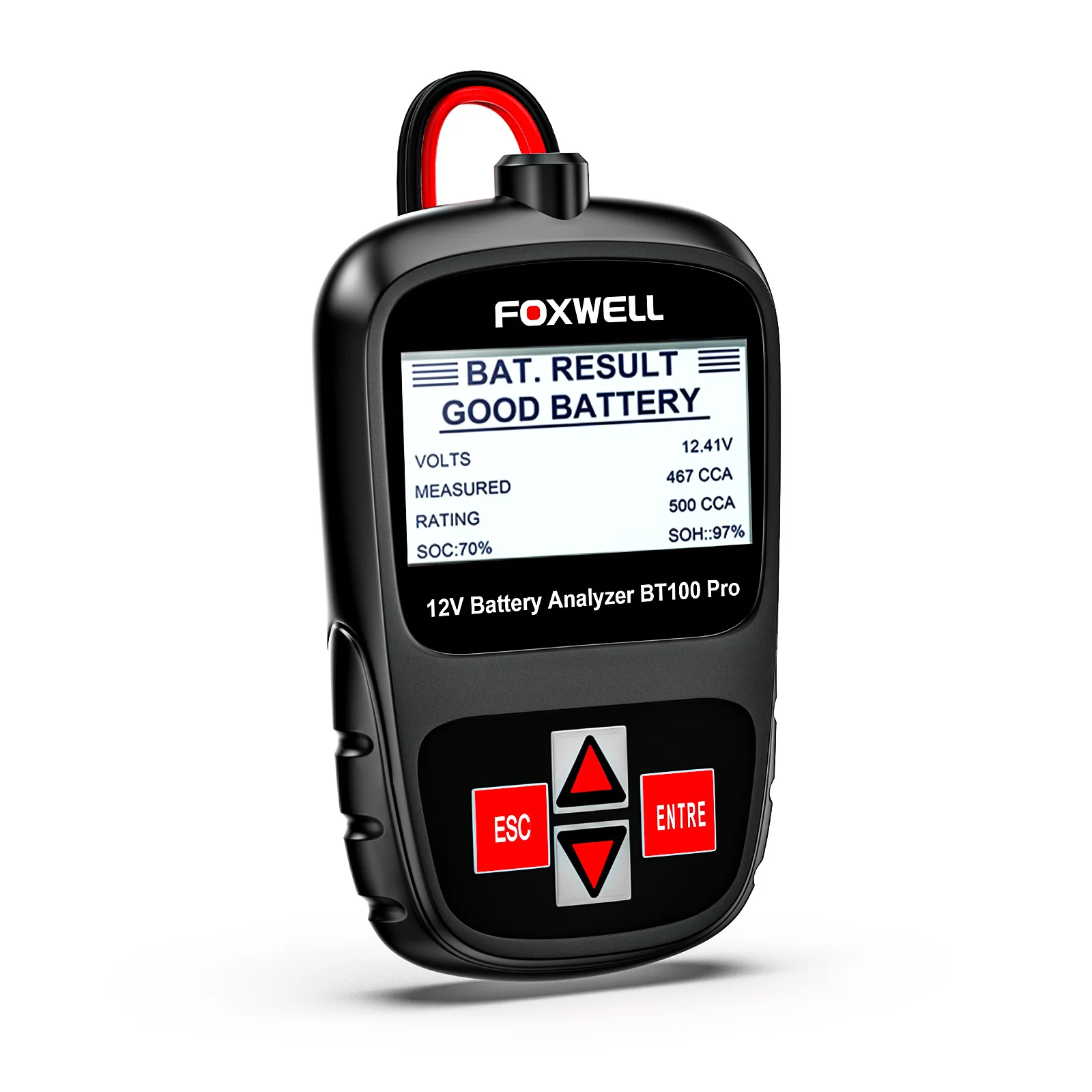 The latest BT100 Pro 12 Volt Battery Analyzer from Foxwell is dedicatedly developed to test 12V regular flooded, AGM flat plate, AGM spiral and gel batteries. It provides a quick, easy and affordable solution for technicians to view battery charging status, check battery health and detect faults.